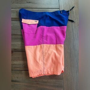 Hurley Vibrant Colorblock Shorts - Navy, Magenta, and Yellow; 2 pairs!