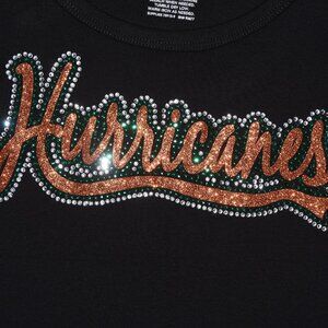 Custom made to order Hurricanes glitter & rhinestone bling sleeveless shirt. This shirt features a large design with lots of orange, green and diamond clear sparkling rhinestones & glitter.
