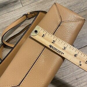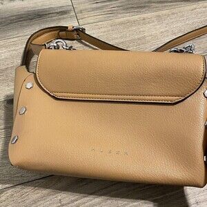 Huser Vegan Leather Crossbody Purse Tan Chain Strap Studded Classic