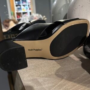 Experience the perfect blend of style and comfort with these Hush Puppies black mules. Featuring a sleek slip-on design with wide crossover straps, these shoes offer a minimalist aesthetic ideal for any occasion. The flat sole ensures all-day comfort, making them a versatile addition to your footwear collection.