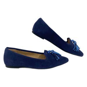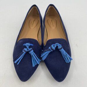 Step into timeless elegance with these Hush Puppies blue suede loafers. Whether you're off to a casual brunch or a day at the office, these tasseled beauties are your perfect companion. Imagine yourself gliding through your day with effortless grace in these pointed toe loafers. Also known as blue suede flats, they offer both style and comfort, making them a must-have for any wardrobe.
