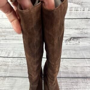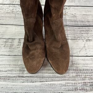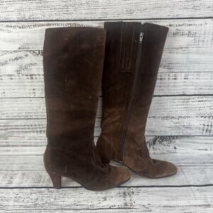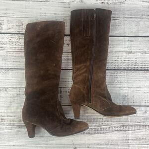Elegant brown heeled boots. Soft suede material. Perfect for any occasion.
