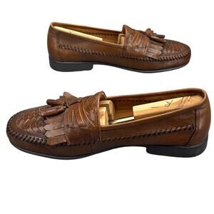 Hush Puppies Brown Kiltie Tassel Woven Leather Slip On Loafer Men's Size 11.5