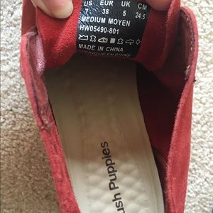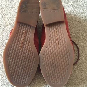 Cute deep orange/red Hush Puppies suede booties with tassel laces. Comfortable cushioned soles and can be worn with anything!
