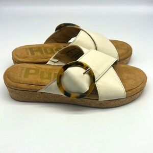 Hush Puppies - June White Leather And Tan Comfortable Slide On Sandals Size 7