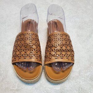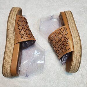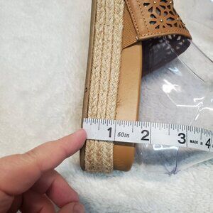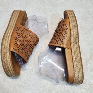 Hush Puppies Leather Beaded Espadrilles Tan Lady Slip On Platform Sandal Women 7