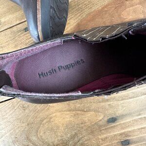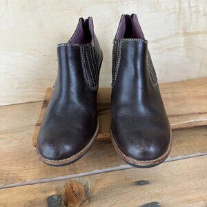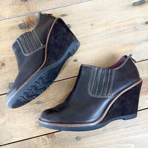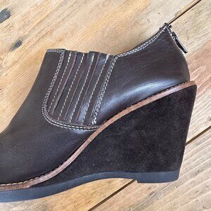 Hush Puppies Leather Wedge Booties Boots Brown 10 Women's