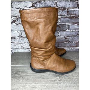 Hush Puppies Mystery Brown Leather Side Zipper Riding Boots Women’s 8.5M US/40EU