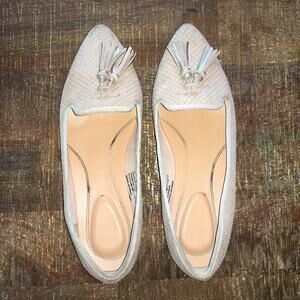 This is a pair of Hush Puppies Sadie Medium Moyen casual slip on shoes in color Beige. Womens size 6. Tassel detail. Textured surface. Excellent condition as seen in pictures.