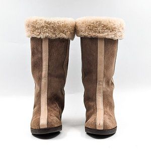 Hush Puppies Women Vintage Retro 90's Brown Suede Faux Shearling Boots Size 6.5