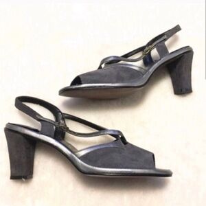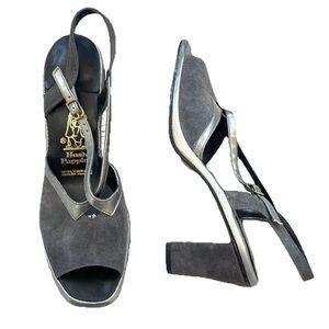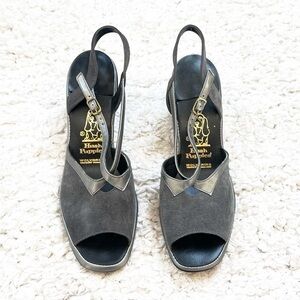 🆕 Hush Puppies suede leather open toe slingback block heels size 10 silver