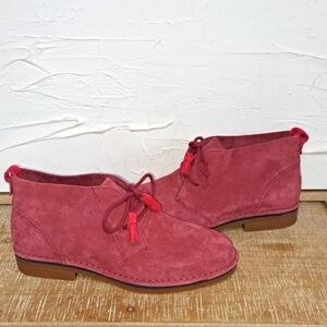 Hush puppies red/pink suede leather Chukka booties with ties Womens 9.5 NWOB