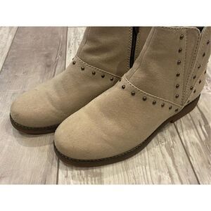 Hush puppie ankle booties/boots size 7. Box says they’re a granite gray but I think they’re more like a cream/light tan. Only worn one time in excellent condition. See pictures. Smoke free home.