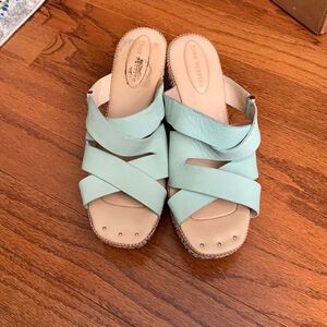 Hush Puppies wedge sandals. Only worn once. Was unable to get the store clearance tag completely removed (as seen in last photo.