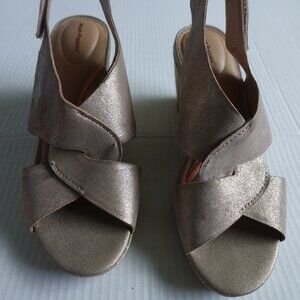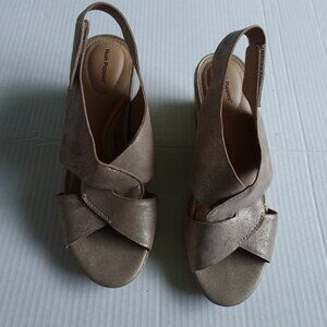 Hushpuppies Metallic Gold CrissCross Leather Wedge Sandals 2.5"Heels Size 9M