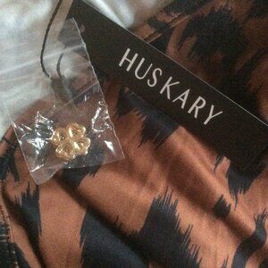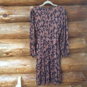 Huskary Leopard Print NWT Long Sleeve Swing w/Pockets Wrap Midi Dress Size Large