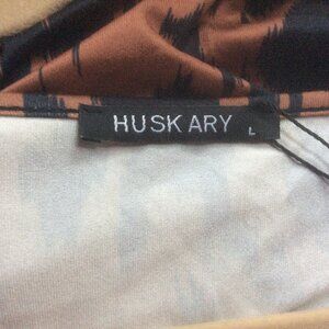 Huskary Leopard Print NWT V-Neck Wrap Long Sleeve Swing Casual Midi Dress Size Large