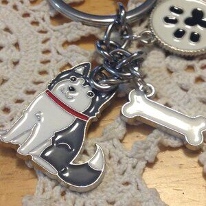 Cute, metal with enamel coating keychain has a cute husky dog plus two charms. Nwot.