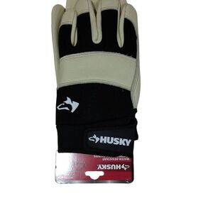 NWT Husky Water Resistant Leather Work Gloves XL Black and Cream