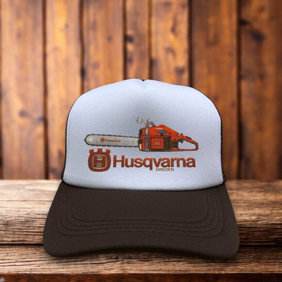 Husqvarna Mens Trucker Hat Brown Snapback Swedish Power Tools Retro Baseball Cap