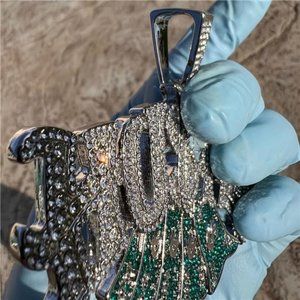 ---Stunning Hustla cash money hip hop pendant for men. Old English Lettering with green cash money bills. ---Bright high quality silver tone finish over alloy metal. ---Measures 3" inches tall (w/bale) and 4" inch wide. ---Nice weight to this piece at approximately 80 grams. ---Flooded out pendant shines so hard it will blind you. ---Fits up to 15mm thick flat chain or 7mm thick round chain. ---Express your love for the hustle with this masterpiece.