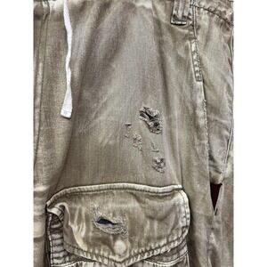 Hustle Gang Cargo Pants Mens 40x32 Tan Distressed Utility Drawstring Industrial
