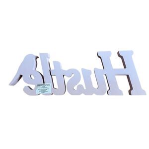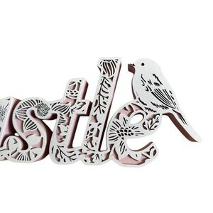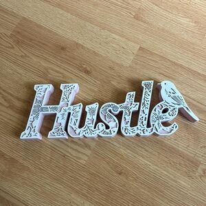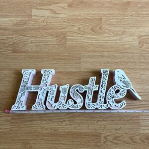 Hustle Pink & White Floral Engraved Wood Home Room Decor