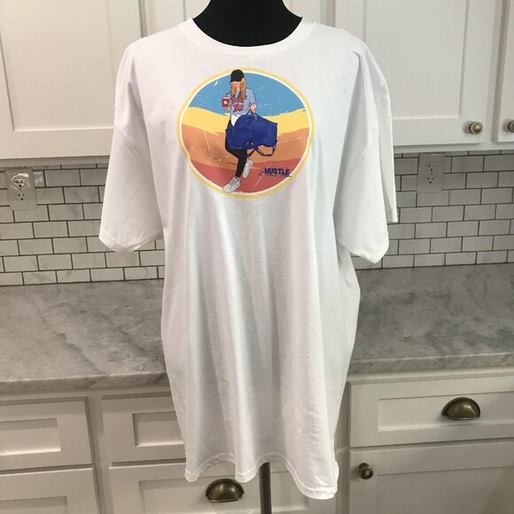 Hustle at Home Mom Shirt Womens Extra Large White Graphic Tee Coffee Hanes