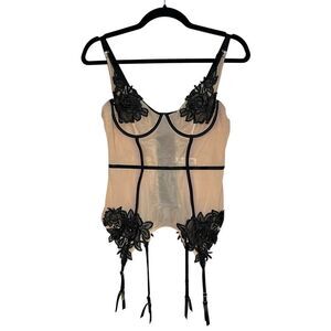 Hustler Women’s 36C Brooke Black Applique Basque Lingerie Bodysuit