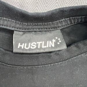 The Hustlin Shirt with White Cat in size small is a black T-shirt featuring a round neck and short sleeves, made from a comfortable cotton blend material. The shirt showcases an animal print pattern with a black cat character, perfect for various occasions such as travel, parties, casual wear, and workwear. With a relaxed fit and casual sleeve type, this basic style top is ideal for all seasons and is sure to make a statement with its unique cat theme design.