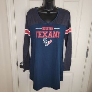 Excellent like new condition in a size Large. Huston Texans long sleeve v-neck t-shirt.