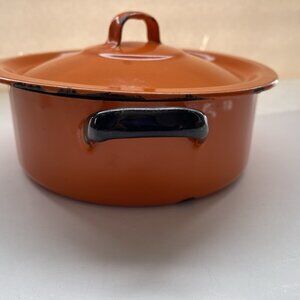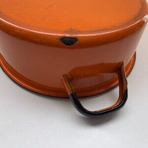 Huta Silesia Pan Lid Enamelware Orange Poland 18 Farmhouse Camping MCM Vintage