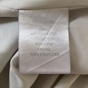Fabric content - 40% polyester 52% cotton 8% nylon & lining is 100% polyester (woven fabric with no stretch)
