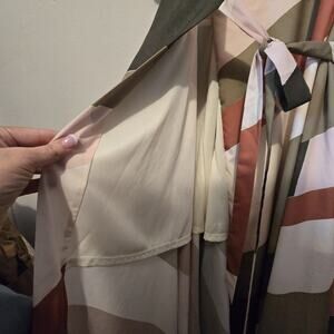 Hutch Anthropologie Abstract Wrap Maxi Dress LG Green Tan Geometric Flowy Lined