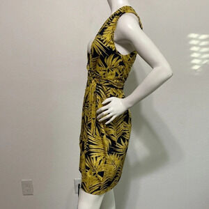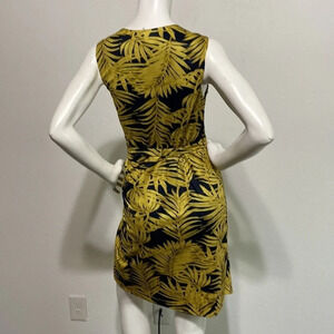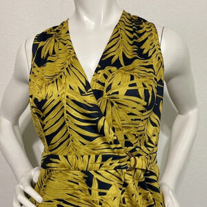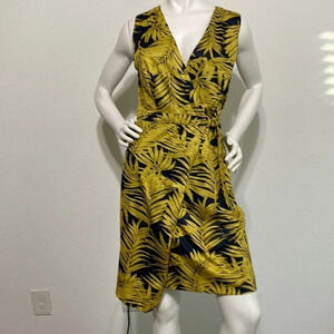 Hutch Anthropologie Carolyn Palm Tree Wrap Dress Gold Navy Size L