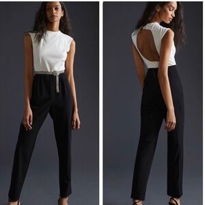 Hutch Anthropologie Jumpsuit Womens 12 Black White Classic Modern Cocktail Party