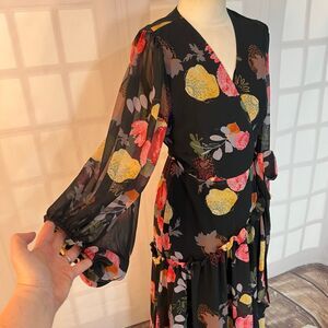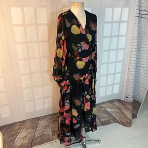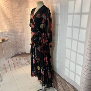Hutch Anthropologie Multicolor Floral Long Sleeve Maxi Wrap Dress Medium