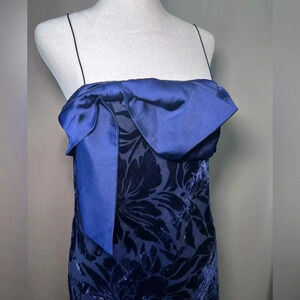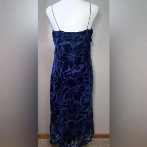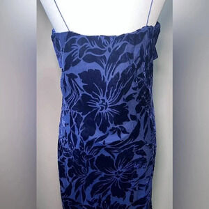 New with tags. Hutch dark blue floral velvet midi dress. Spaghetti straps that are not adjustable. Pullover dress with bow accent. Perfect cocktail dress for a wedding or vacation.