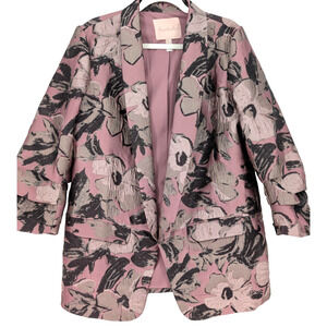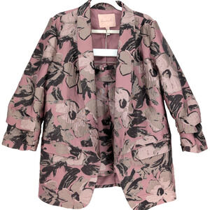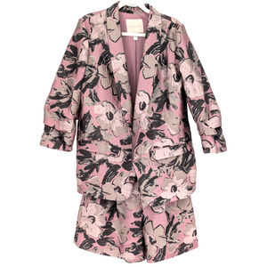 Hutch Anthropologie Pink Brocade Tapestry Satin Floral Blazer Shorts Suit Set LG