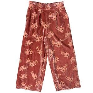 Hutch Anthropologie Pink Combo Orange Floral Burnout Velvet Velour Pants Size M