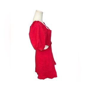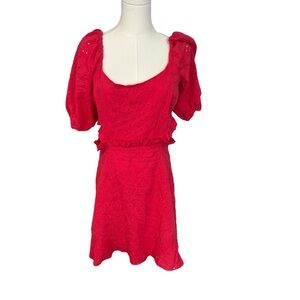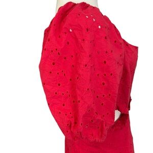 Hutch Anthropologie Red Embroidered Eyelet puff sleeve Cutout dress size 6