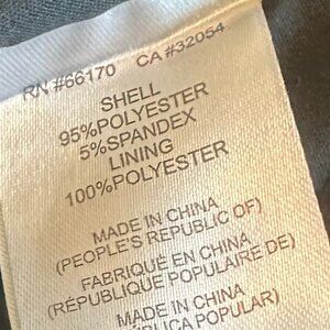 Shell: 95% polyester/5% spandex - Lining: 100% polyester