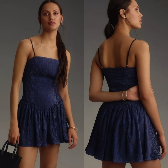 Hutch Anthropologie Sleeveless Drop Waist Square Neck Romper in Blue Motif NWT