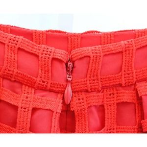 Hutch Anthropologie Soraya Red Windowpane Lace Cutout Hi Lo Midi Skirt Size 0
