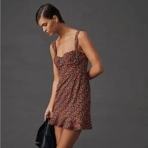 Hutch Anthropologie floral mini dress corset top ruffle hem XS
