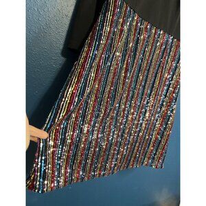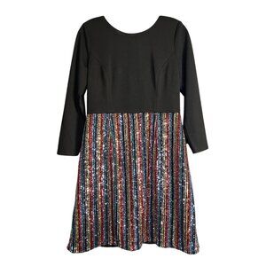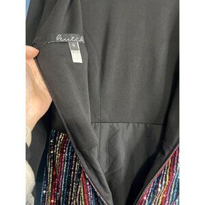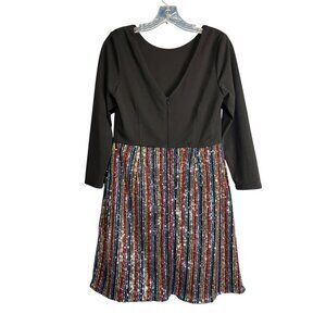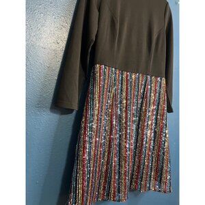 Hutch long-sleeve dress with a sleek black top and multicolor sequin skirt, offering a playful yet elegant design for versatile wear. Like new, unworn.