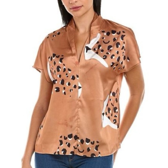 Stylish brown blouse with leopard print. Short sleeves. Elegant and chic design.