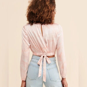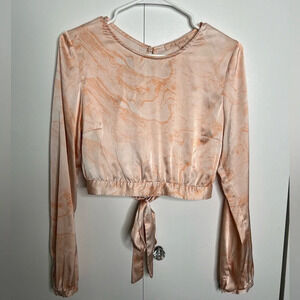 Hutch- Cropped Marble Blouse long sleeve - peach tie dye- Medium
