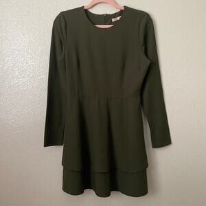 Hutch Dress Womens Size 4 Green Mini Double Layer Peplum Quiet Luxury Minimalist