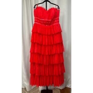 Hutch Evi Strapless Plissé Gown Red Romantic Floral Size 14 W Plus NWT Gorgeous